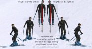 While learning to ski, movements should be thought of as putting weight over each ski not as pushing on a ski, as it is the where the weight is that is important.